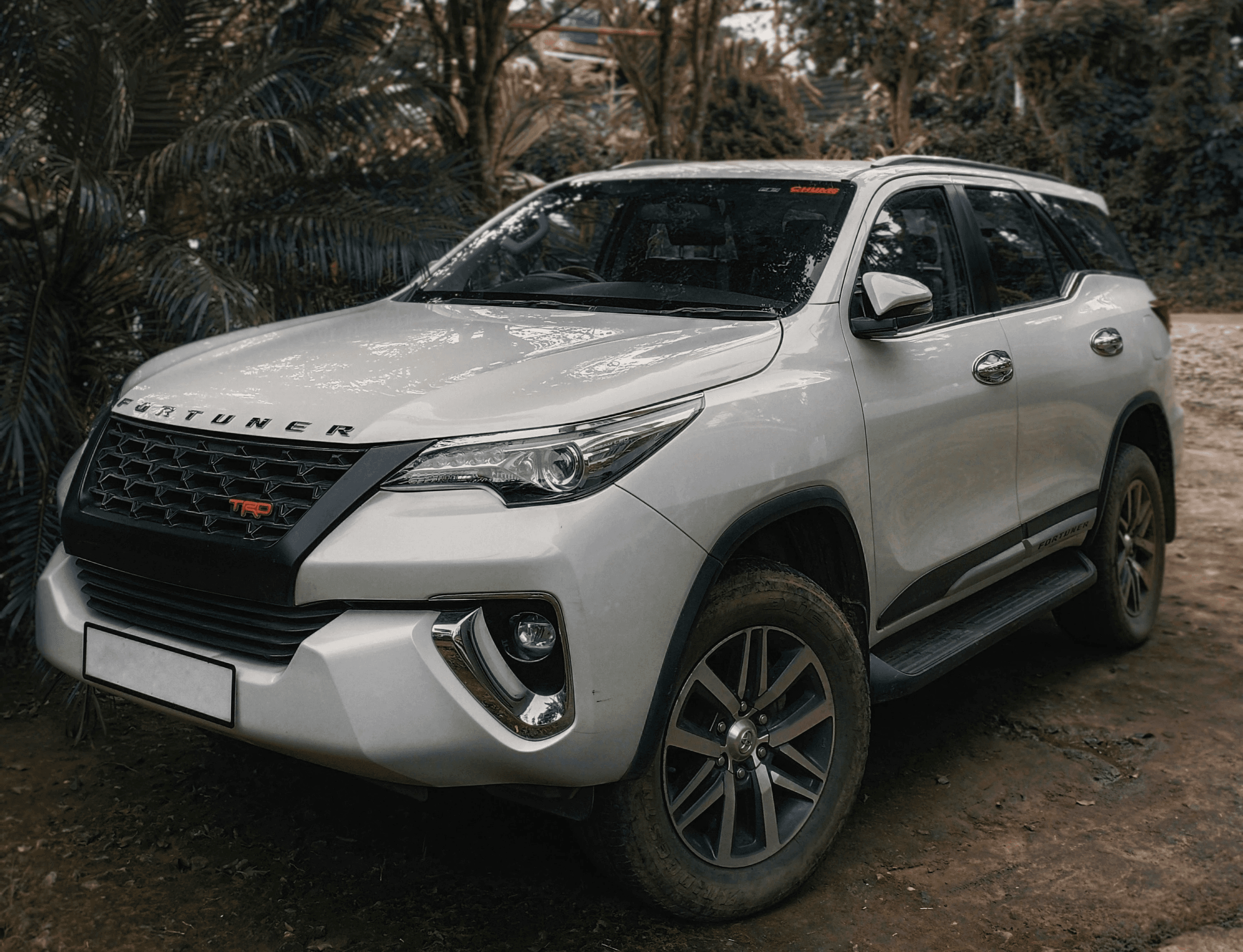 The Toyota Fortuner is a premium SUV known for its powerful performance, rugged design, and spacious interiors, making it an ideal choice for both city drives and off-road adventures.